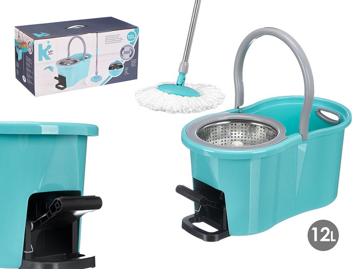 CUBO 12L ESCURRIDOR GIRATORIO FREGONA METAL PEDAL