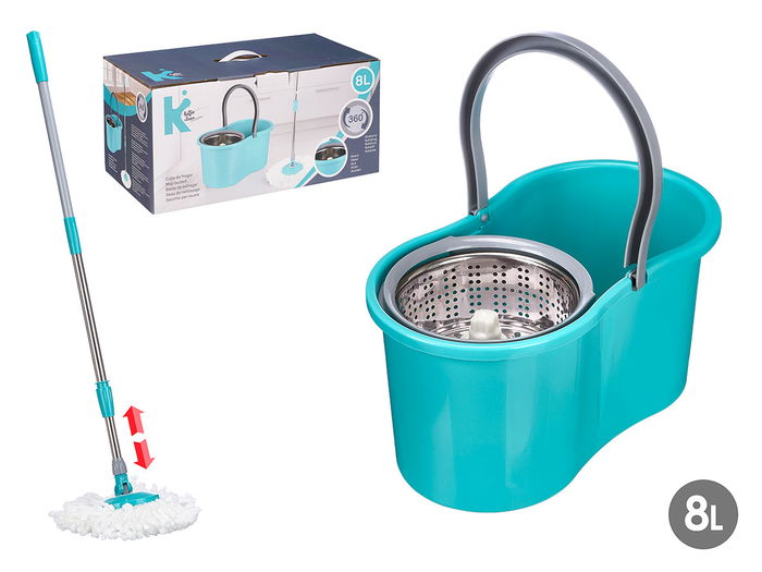 CUBO 8L ESCURRIDOR GIRATORIO FREGONA METAL