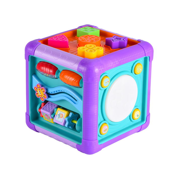 Este colorido cubo de actividades está diseñado para estimular el desarrollo sensorial, motriz y cognitivo de los más pequeños a través del juego interactivo: cada una de sus caras ofrece una experiencia única, incluyendo sonidos musicales de instrumentos, engranajes giratorios, rodillos, un piano con cinco botones de melodías, piezas deslizantes y cuentas de bolitas. Con luces llamativas y actividades encajables, este juguete multifuncional fomenta la coordinación ojo-mano, la exploración táctil y el aprendizaje temprano, convirtiéndolo en el compañero ideal para bebés y niños pequeños en etapa de descubrimiento.