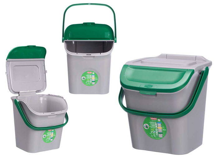 Stefanplast Cubo Basura 28L Apilable Ecoway Verde Gris 38 x 41 x 37 cm (Set de 6)