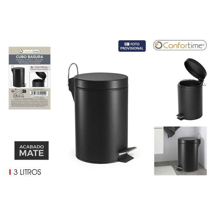 Confortime Cubo Basura Metal con Pedal 3 Litros Negro 17 x 25.7 x 22 cm (6 Unidades)
