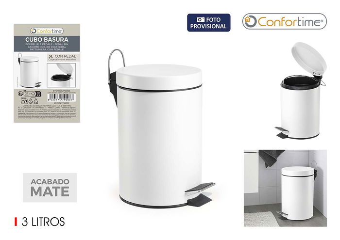 Confortime Cubo Basura Metal con Pedal 3 Litros Blanco (17 x 25.7 x 22 cm) (6 Unidades)