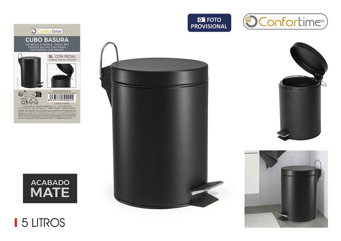 Cubo Basura Metal C/Pedal 5Lt Black Confortime