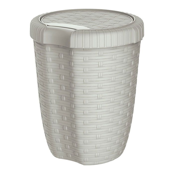 Cesto con tapa color crema imitación mimbre / rattan. material polipropileno, capacida 8 l. dimensiones ø23 x 29 cm