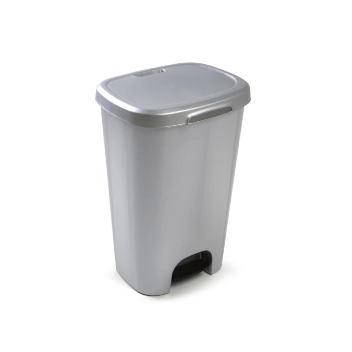 Plasticforte Papelera Contenedor 50 Litros Plástico con Tapa y Pedal Color Plata 410x360x635 mm