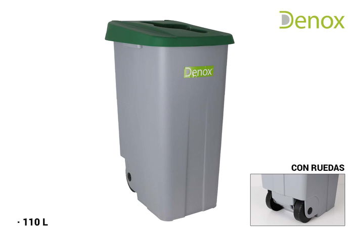 Cubo Basura Reciclaje 110L. Abierto Verde Denox