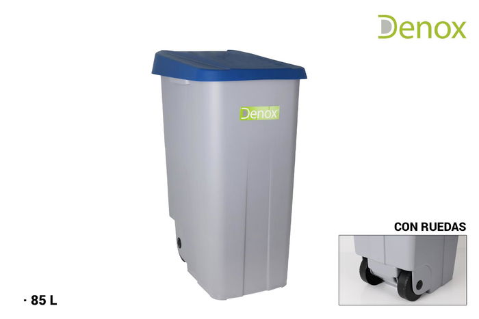 Denox Cubo Basura Reciclaje 85L Cerrado Azul 41 cm Ancho x 76 cm Alto x 58 cm Largo (2 Unidades)