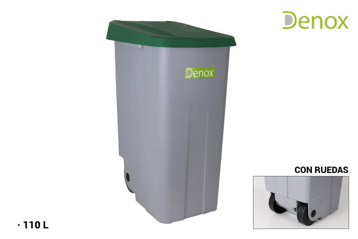 Cubo Basura Reciclaje 110L. Cerrado Verde Denox
