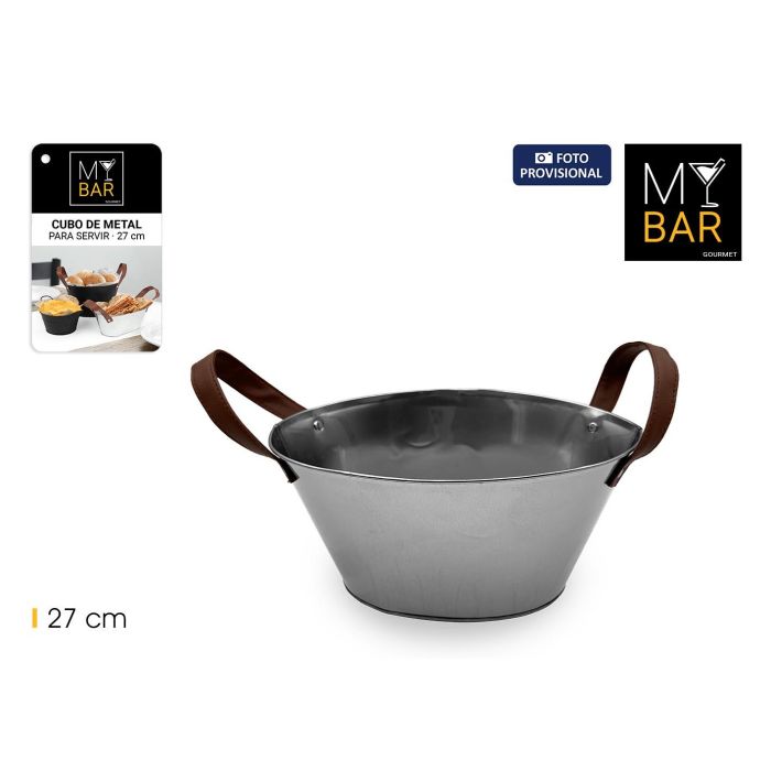 Cubo Metal Oval.Asas Piel Grey 27Cm My Bar