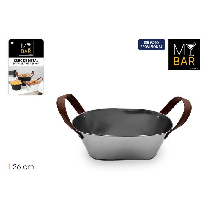 Cubo Metal Rect.Asas Piel Grey 26Cm My Bar