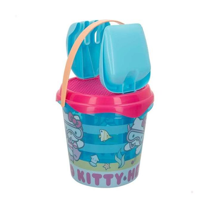 Color Baby Cubo de Playa Hello Kitty Diámetro 18cm con Pala, Rastrillo y 3 Moldes