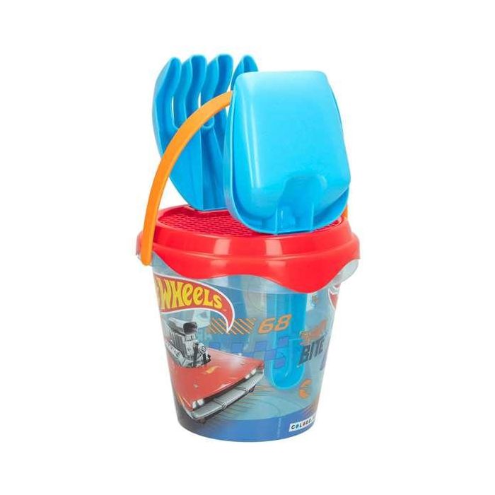 Hot Wheels Cubo de Playa 14 cm con Pala, Rastrillo, Cedazo y 1 Molde en Red - Modelos Surtidos