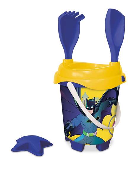 Cubo Playa Castillo Batma Con Cedazo,Pala,Rastrillo,Regadera y Moldes 18 cm