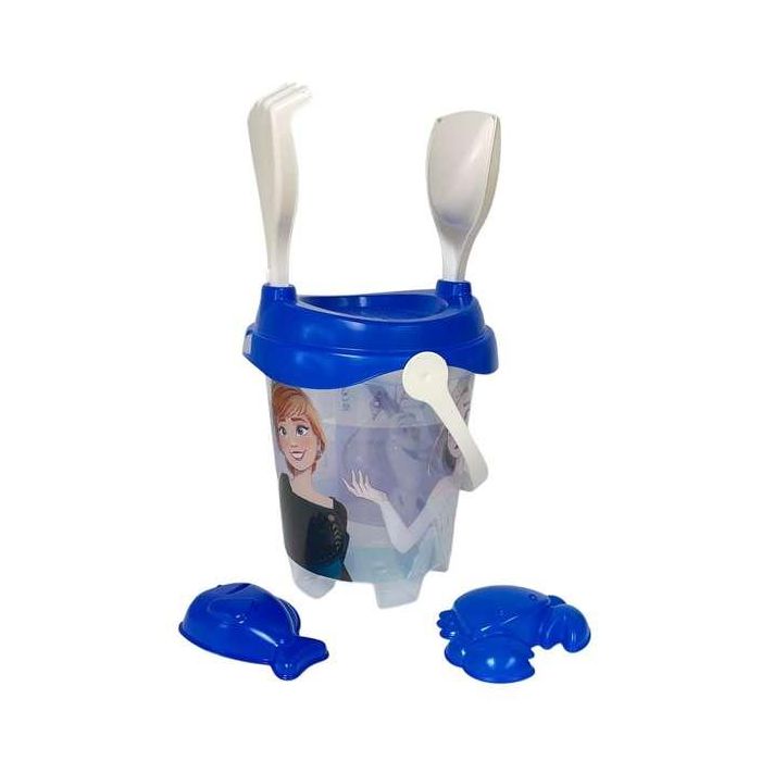 Frozen Cubo de Playa Castillo Transparente con Cedazo, Pala, Rastrillo y Moldes para Niños a Partir de 3 Años