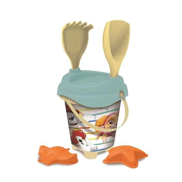 Paw Patrol Cubo Playa Castillo con Cedazo, Pala, Rastrillo y Moldes. 18 cm