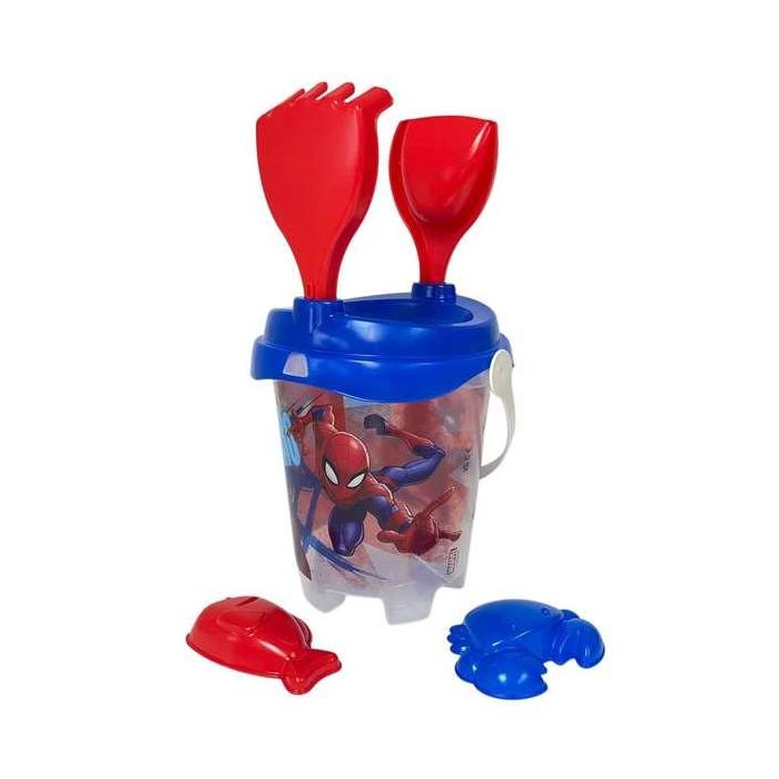 Unice Cubo de Playa Castillo Spiderman Transparente con Cedazo, Pala, Rastrillo y Moldes