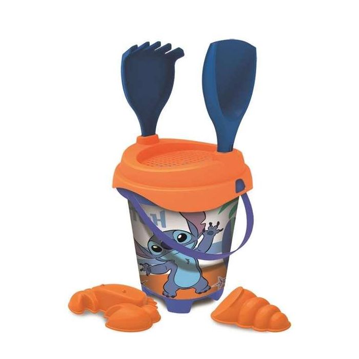 Unice Cubo Playa Castillo Stitch con Cedazo, Pala, Rastrillo y Moldes. 18 cm