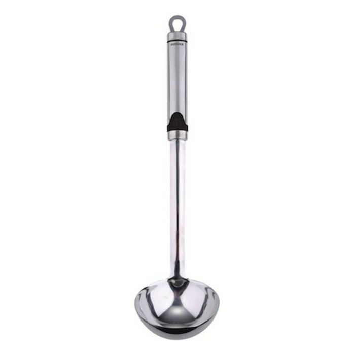 Cucharón de acero inoxidable de la marca Bergner Gizmo. Es mejor que una cuchara de madera. Es un accesorio de cocina ideal para servir sopas y otras recetas de tenedores de una manera segura y cómoda. La fabricación en acero inoxidable brinda una gran vida útil a esta pieza. No perderá su utilidad o su apariencia. Su mango ergonómico permite manipular con firmeza y seguridad el cucharón y reduce la posibilidad de accidentes en la cocina. Cuenta con un anillo final para colgar el instrumento en cualquier lugar.