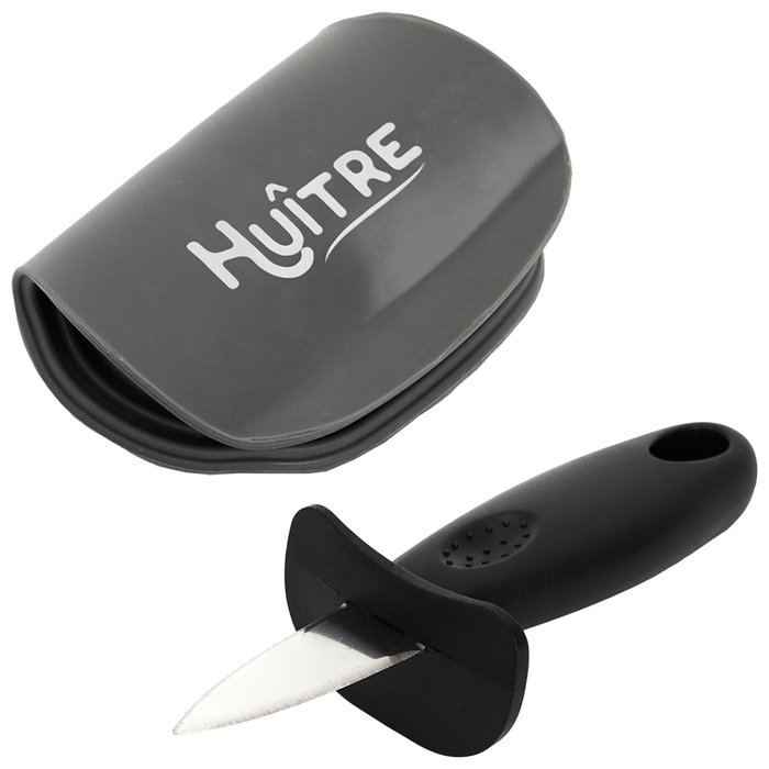 - Coloca la ostra en el soporte-agarrador y utiliza el cuchillo para abrirla. El agarrador de silicona está dotado de bandas antideslizantes que permiten sujetar la ostra.