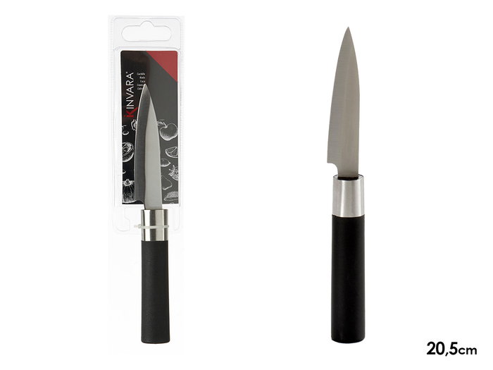 Kinvara Cuchillo Pelador Acero Inoxidable con Mango Negro, Hoja 10x2.5 cm, Dimensiones 20.5x20.5x2 cm (Set de 24)