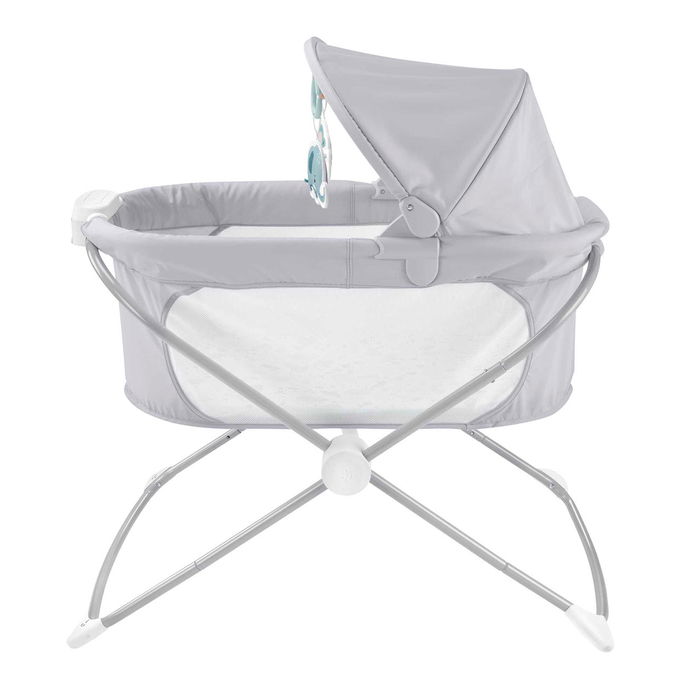 La Cuna Vista relajante con proyecciones de Fisher-Price te ayuda a mecer y calmar a tu bebé para que se duerma con vibraciones, música y sonidos relajantes. La suave y retráctil capota tiene dos juguetes colgantes y una proyección de estrellas luminosas. Además, esta cuna portátil se pliega de forma muy compacta para facilitar su transporte y guardado. Solo puede usarse con bebés que no puedan incorporarse sin ayuda apoyándose sobre las manos y las rodillas, y que no sepan sentarse por sí solos.