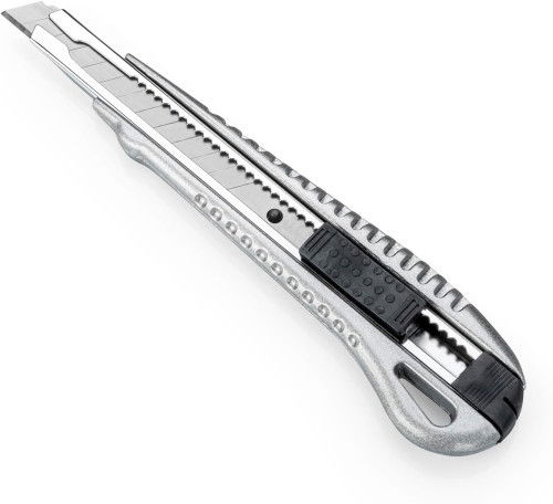 Cuchilla de cúter Profesional con carcasa de metal y cuchilla de 9 mm Características: -Elegante cúter para cortes limpios y bordes lisos. -La herramienta versátil para profesionales. -Deslizamiento de la cuchilla ranurada estándar, de acero inoxidable, con mecanismo automático de bloqueo. -La guía metálica de la cuchilla de corte aporta seguridad durante el manejo y garantiza la precisión de corte. -Hay una herramienta de corte para la cuchilla integrada en el elemento de cierre de la guía trasera de la cuchilla. -Mango de metal ergonómico y antideslizante para un agarre seguro. -Suministrado en blíster para autoservicio con la cuchilla colocada.