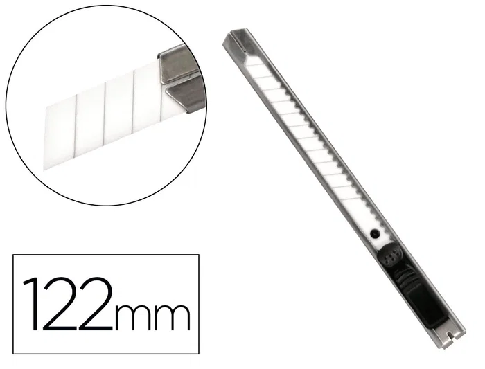 Con freno de seguridad, cuchilla de cerámica precortada. Cuchilla de 9 mm de ancho. Longitud: 122 mm.