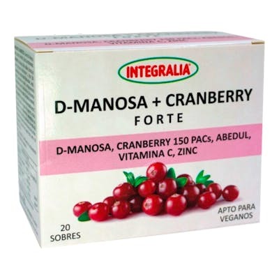 INTEGRALIA D-Manosa + Cranberry Plus 20 Sobres - Sistema Urinario, Antioxidante, Vegano, Vitamina C y Zinc