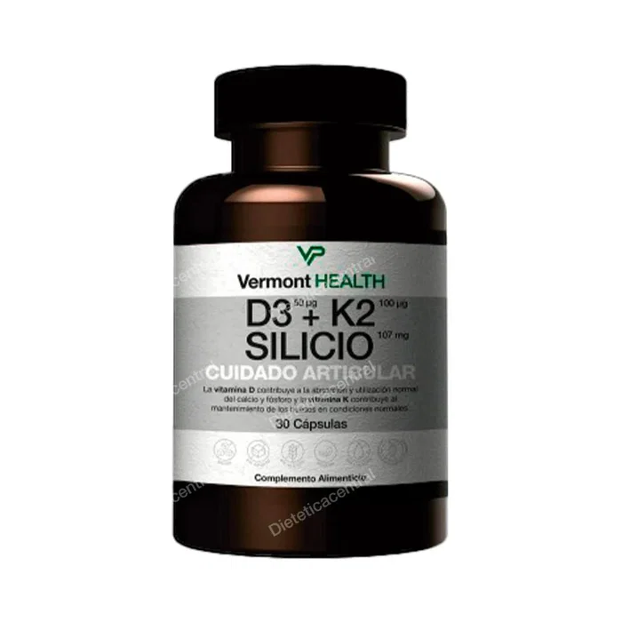 VERMONT HEALTH D3 + K2 + Silicio Sistema Articular 30 Cápsulas - Mantenimiento Huesos y Articulaciones