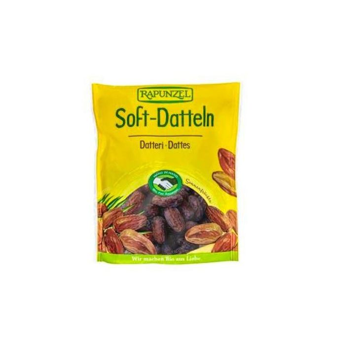 Indicaciones: Dátiles blandos sin hueso Provienen del programa Hand in Hand que une la agricultura biológica y el comercio justo Los aromáticos dátiles ya secos son suavemente rehidratados con vapor de agua y convertidos en dátiles blandos. Ocasionalmente es posible encontrar algún trozo de hueso en la fruta.