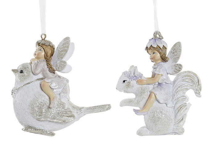 DKD Home Decor Decoracion Colgante Navidad Fantasia Blanco Dorado Resina 5 x 9 x 9 cm (6 Unidades)