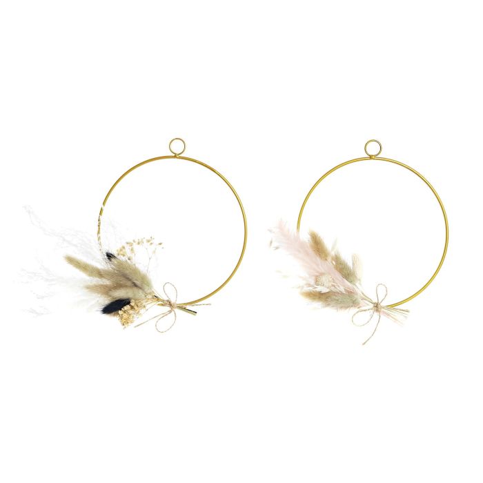 DKD Home Decor Decoración Colgante Shabby Rosa Palo Marron Dorado Metal Flor Seca 20 x 20 x 2 cm (4 Unidades)