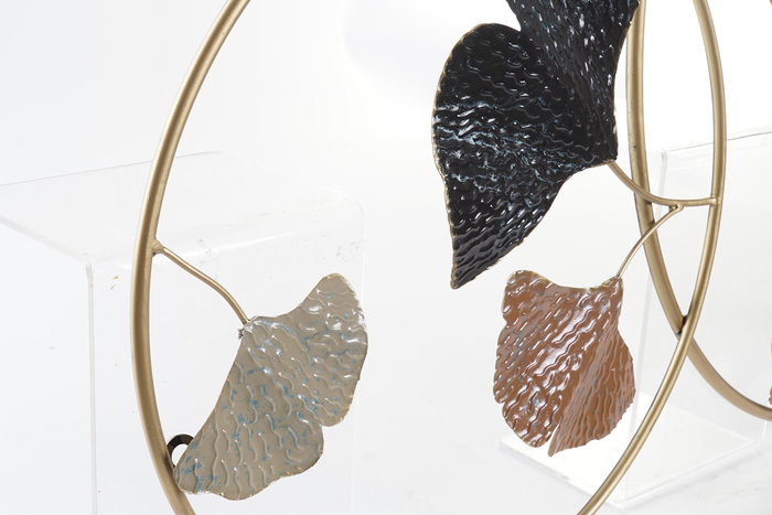 DKD Home Decor 7 x 67 x 103.5 cm Decoración de Pared Metal Terracota Dorado Hojas