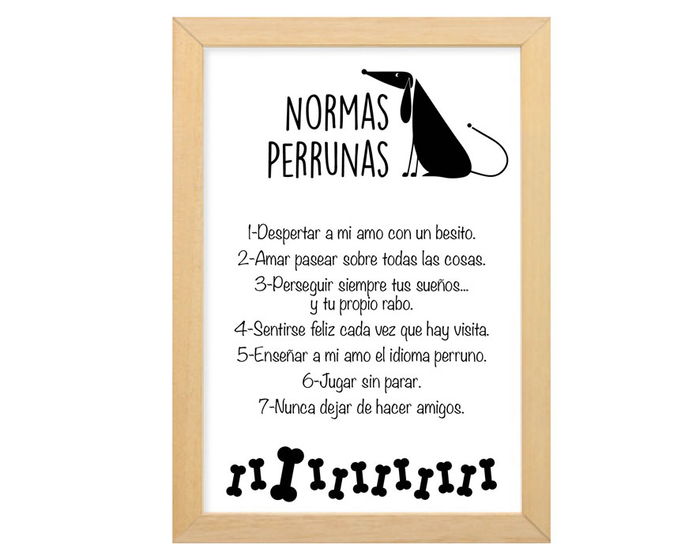Este divertido cuadro con normas de perros es un "must" para todos los amantes de los caninos. es una divertida decoración de pared ideal para todos aquellos que tienen perros o aman a estos animales. de buen tamño ( 35*25 cm) es una original pieza decorativa de interior.