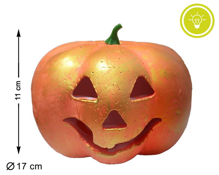 Ilumina tus noches de octubre con esta calabaza decorativa con luz. su diseño tradicional con acabado dorado y luz cálida crea una atmósfera acogedora y festiva. perfecta para ventanas, entradas o como centro de mesa en celebraciones de halloween y otoño.