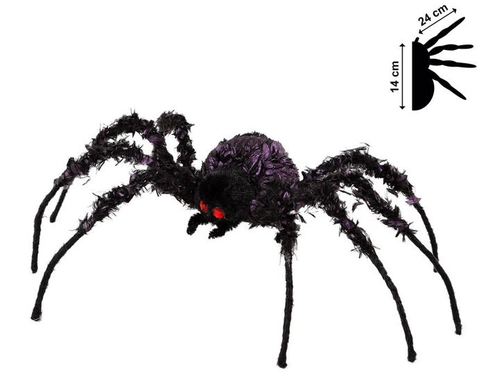 ¿no tendrás aracnofobia? si es así, entonces tienes un gran problema con este accesorio decorativo para fiestas de halloween. nuestra gran araña negra y violeta es una pieza decorativa perfecta para la noche de brujas que será perfecta para decorar una mesa, una entrada o cualquier parte de la casa.