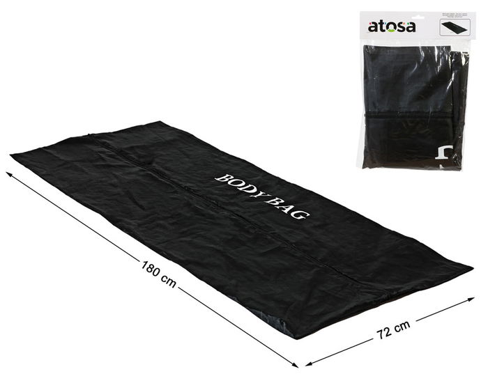¡atrévete a sorprender con esta escalofriante funda de muerto negra! con unas dimensiones de 180 cm de largo y 72 cm de ancho, es perfecta para complementar tus disfraces de zombi o decoraciones macabras en fiestas de halloween. la funda, con el texto "body bag" impreso, añade un toque de realismo perfecto para cualquier evento temático. ideal para crear atmósferas tétricas en tu hogar o en escenarios de terror. no te pierdas la oportunidad de destacarte con este accesorio original y divertido, que sin duda llamará la atención de tus invitados.