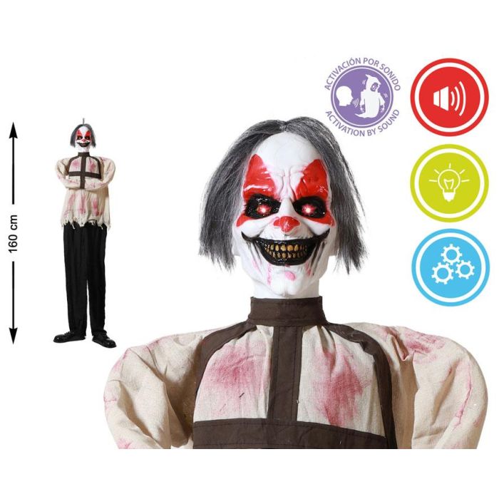 Esqueleto Colgante Halloween 160 cm con Túnica Roja, Pelo Negro, Luz y Sonido