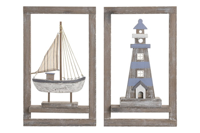 DKD Home Decor Decoración de Pared Atlántico, Panel MDF con LED, Colores Azul/Blanco/Marrón, 8x50x30 cm, Incluye 2 Unidades