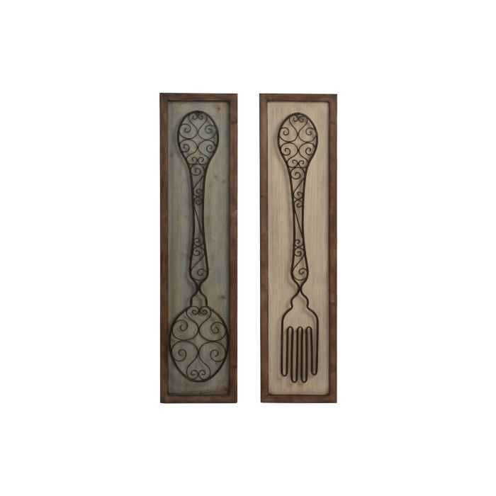 DKD Home Decor Decoracion Pared Cottage Marron Negro 4 x 99 x 24 cm (2 Unidades) Madera Metal
