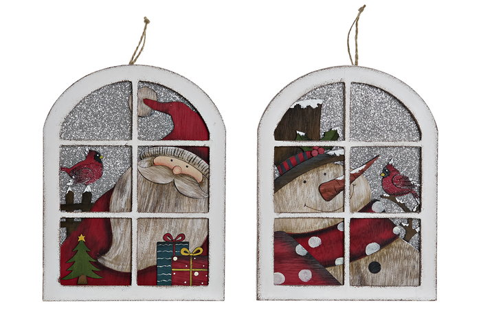 DKD Home Decor Decoración de Pared Navideña Tradicional, Madera y Cuerda, Papá Noel, Muñeco Nieve, Blanco Rojo, 4 Unidades, 1.2x24x18.5 cm