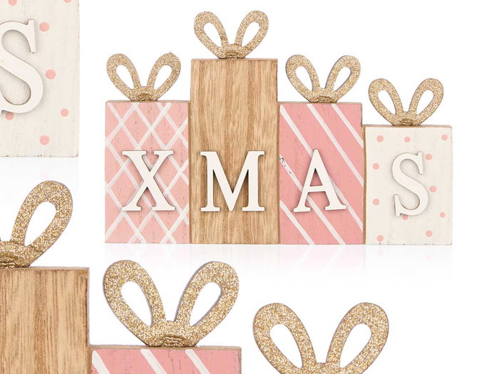 DECORACION XMAS REGALO ROSA MADERA