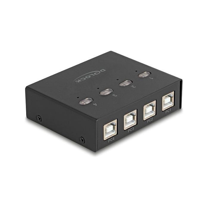 DeLOCK 11507 Switch USB 2.0 para 4 Ordenadores y 4 Dispositivos, 8 Puertos, Transferencia 0.48 Gbit/s, Color Negro