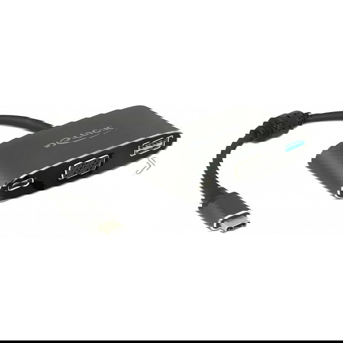 DeLOCK 62992 Adaptador USB-C a VGA, HDMI 4K 3840x2160, USB-A y USB-C PD, Multi-Adapter de Metal Gris
