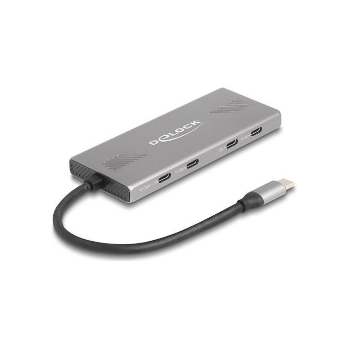 DeLOCK 64313, USB 3.2 Gen 2 (3.1 Gen 2) Type-C, USB 3.2 Gen 2 (3.1 Gen 2) Type-A, USB 3.2 Gen 2 (3.1 Gen 2) Type-C, 10000 Mbit/s, Gris, Aluminio, 80 W