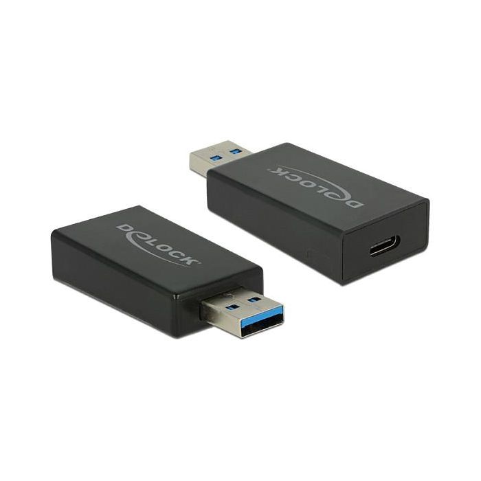 DeLOCK 65689 Adaptador USB 3.1 Gen 2 Tipo A Macho a USB Tipo C Hembra, 10 Gbps, Negro