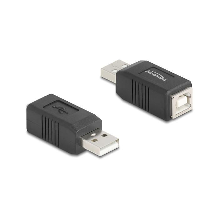 DeLOCK 67202 - Adaptador USB 2.0 Tipo A Macho a Tipo B Hembra, Negro, Plug and Play, Velocidad 0,48 Gbit/s