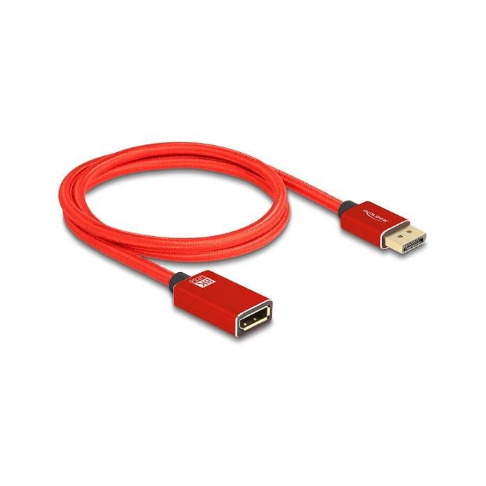 DeLOCK 81081 Cable de extensión DisplayPort 8K (7680x4320) 60 Hz 240 Hz HDR 1 m Macho a Hembra, Rojo, Metálico, DisplayPort 1.4, DSC 1.2