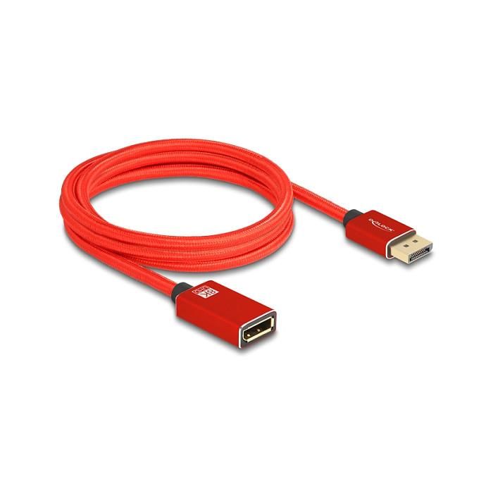 DeLOCK 81082 Cable DisplayPort 1.4 Extensión 8K 60 Hz 2 Metros Rojo Metálico - 7680x4320, DSC, HBR3