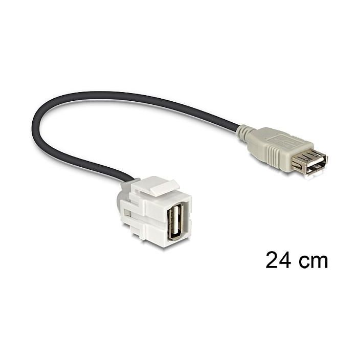 DeLOCK 86329 Módulo Keystone USB 2.0 Tipo A Hembra a Hembra con Cable de 0.24 m, Color Negro